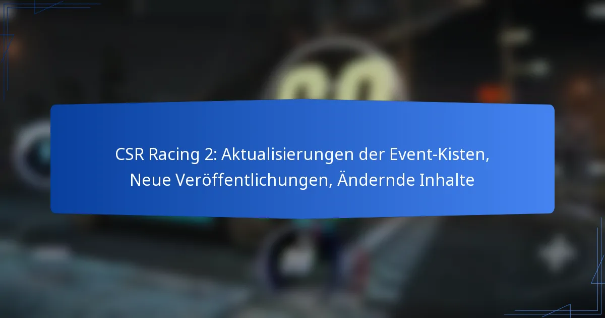 Die neuesten Updates zu den Event-Kisten in CSR Racing 2 umfassen bedeutende Änderungen im Inhalt, in der Häufigkeit der Updates und die Einführung neuer Gegenstände, die das Gameplay verbessern. Diese Updates zielen darauf ab, das Spiel frisch und ansprechend für die Spieler zu halten, indem sie auf das Feedback der Community reagieren und die Gameplay-Mechaniken weiterentwickeln.