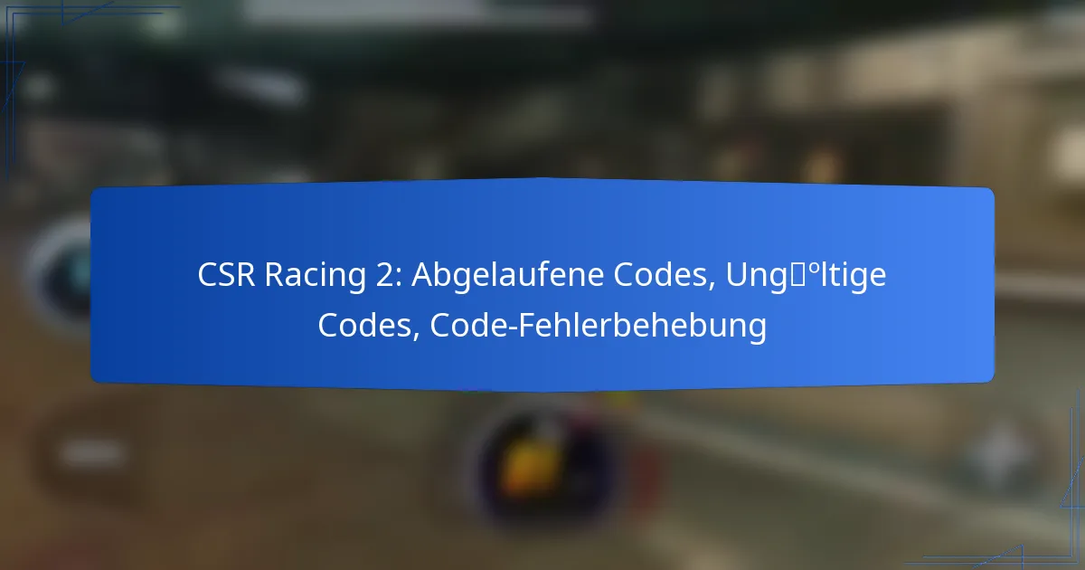 CSR Racing 2: Abgelaufene Codes, Ungültige Codes, Code-Fehlerbehebung